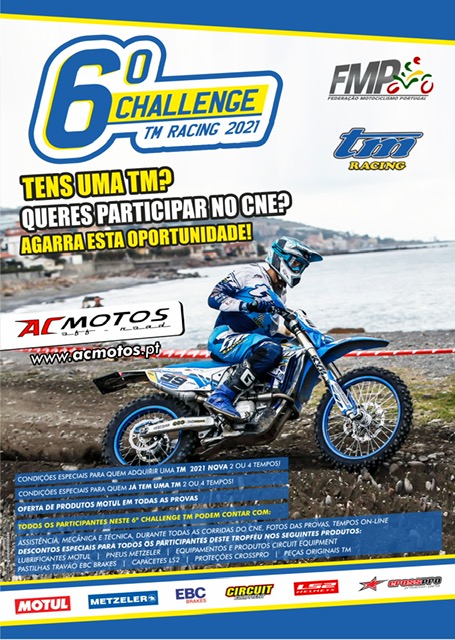 A AC. Motos, responsável pela importação da TM Racing, e em parceria com os seus concessionários, leva a cabo em 2021 o 6º Challenge TM Racing durante o Campeonato Nacional de Enduro (CNE), assegurando novamente aos proprietários das motos de Pesaro condições especiais para as suas participações nas etapas do CNE.