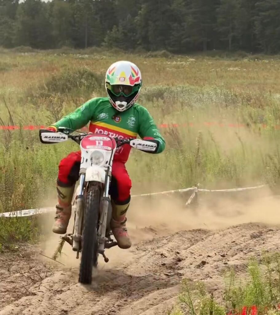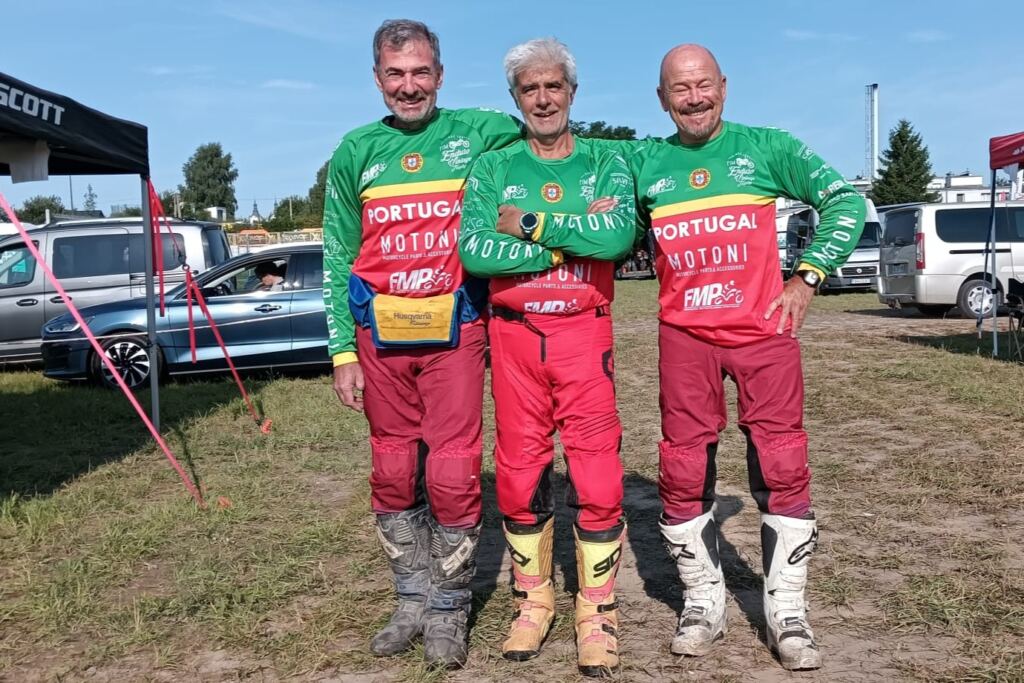 “Primeiro que tudo, como experiência achei espetacular. Estamos a competir com algumas das glórias deste desporto e, ao mesmo tempo, com pilotos que já tinham competido connosco. Demos conta que somos competitivos – há sempre aqueles ‘extraterrestres’, mas são só dois ou três – e que, apesar da idade, conseguimos andar de moto, ‘curtir’ a dureza da prova e ficar entusiasmados para continuar. Nesse aspeto a experiência foi muito positiva e talvez saia daqui o embrião para fazer uma equipa de Portugal mais completa, que vá participar na Alemanha (em 2026) e que possa fazer uma boa prestação no ano a seguir em Portugal. Por outro lado, tanto a mim como ao Paulo correu-nos mal, porque tivemos avarias que, se calhar, são próprias destas motos mais antigas, mas que não nos ocorreu que pudessem acontecer, nem nunca tinham acontecido nas nossas vidas nas motos. O Paulo partiu o veio do braço oscilante e eu parti o carreto da cambota que liga à embraiagem – a moto trabalhava, mas não andava, e fiquei a meio do primeiro dia de percurso. Mas as corridas são assim, as motos são assim, e no cômputo geral gostei imenso e fiquei com vontade de repetir, que acho que é o mais importante.”