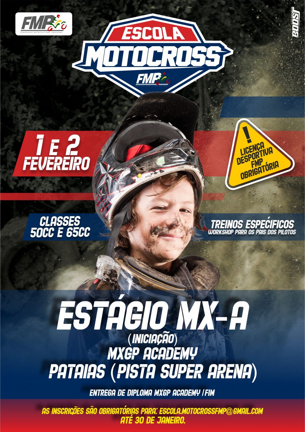 As inscrições são obrigatórias e todos os pilotos terão que ter igualmente licença desportiva FMP para o ano 2020, podendo as mesmas ser efectuadas para o mail: escola.motocrossfmp@gmail.com até ao dia 30 de Janeiro. Mais informações podem igualmente ser obtidas através de Pedro Castro, monitor deste estágio pelo número 968596391.