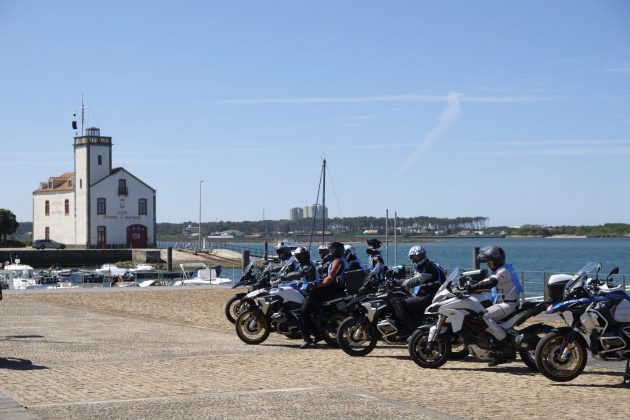 Mais eclética, a cidade de Espinho – onde, à imagem de Nova Iorque, as ruas não têm nomes mas sim números – foi contornada para evitar a estreita e apinhada marginal rumo à estrada florestal de Esmoriz, Maceda e Cortegaça, passando pela pista militar sem vislumbrar os bem escondidos hangares, enterrados no solo. No mais costeiro Lés-a-Lés de sempre, um dos ex-libris do evento apoiado pela BMW, BP, Dunlop, NEXX, Touratech e Agência Abreu, foi a Ria de Aveiro, estuário com 41 km de comprimento, juntando as águas dos rios Vouga, Antuã, Boco e Fontão. A grande biodiversidade tornam-na num local de imenso interesse ao longo de todo o ano, sendo possível apreciar flamingos no inverno, além de várias espécies de garças, guarda-rios e muitas aves limícolas.  Mas há mais para ver, do Cais da Béstida ao de Pardelhas, passando por Mamaparda ou pela Cicloria, com descoberta através de bicicletas gratuitas proporcionadas pela CM da Murtosa. Que, por isso mesmo, aqui instalou um Oásis, no Cais do Bico, com apoio do Rancho Folclórico As Andorinhas de S. Silvestre, do Bunheiro e onde os Moto Clubes de Estarreja e Murtosa foram imprescindíveis na organização do estacionamento de tantas motos. E no controlo de mais um ponto de passagem, o 6º dos 18 furos previstos na tarjeta comprovando a realização de todo o percurso entre Felgueiras e Lagos.