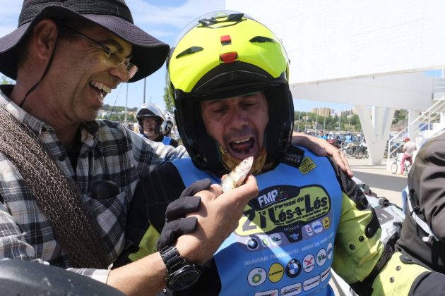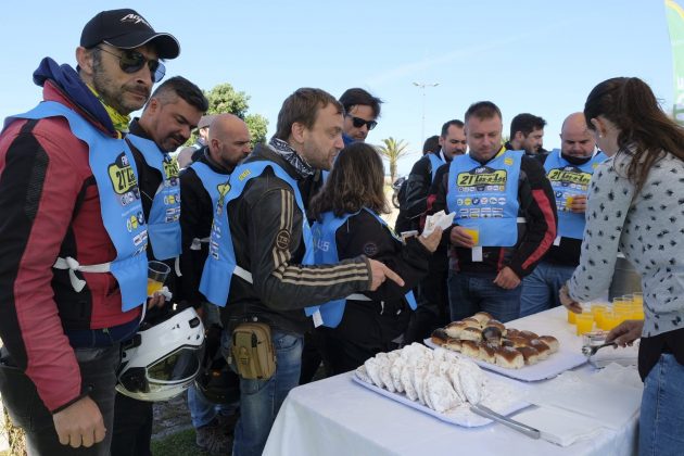 Sem vinho ou outras bebidas alcoólicas, naturalmente proibidas durante o evento, surpresa na chegada à Marina da Afurada, simpático e versátil espaço onde o conhecido concessionário Antero, dos Carvalhos proporcionou muito agradável Oásis, povoado por muitos ‘pescadores’ do Moto Clube do Porto. Mais divertidos e de estômago reconfortado, foi partindo o pelotão, ao longo de mais de 5 horas, pela marginal marítima, passando pelas praias da Madalena, Valadares, Francelos, Miramar e a curiosa Capela do Senhor da Pedra, erigida em 1686 dentro do mar, Aguda e o seu Parque das Dunas, criado em 1997 pelo Parque Biológico de Gaia, e Granja, local onde o casario evidencia a importância das famílias que ali passavam férias.