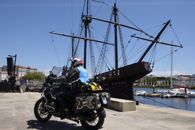 Atravessado o Cávado, seguiu-se Fão e Ofir, os moinhos da Apúlia e o direito a entrar na lota e apreciar peixe fresco… apesar de ser segunda feira e ainda por cima feriado. Mau dia, dizem as varinas. Por isso, tempo apenas para mais umas fotos que o peixe por lá ficou, rumando a Vila do Conde de forma mais despachada, fugindo às belíssimas e pacatas estradinhas entre as veigas bem como à marginal da Póvoa de Varzim, ganhando assim tempo que a Figueira da Foz ainda estava longe. Das Caxinas, de fama assente na Selecção Nacional de futebol, sendo a freguesia que mais jogadores cedeu, de André a Bruno Alves, passando por Paulinho Santos, Hélder Postiga ou Fábio Coentrão, até à Marginal de Vila do Conde, com circuito onde brilharam nomes como Jorge Viegas, tendo o fundador da Federação de Motociclismo de Portugal e actual Presidente da Federação Internacional de Motociclismo ali competido por diversas ocasiões. Vedeta foi também a nau quinhentista, excepcionalmente aberta pela CM de Vila do Conde para que os viajantes dos tempos modernos pudessem perceber como era difícil, trágico até, atravessar os mares na época dos Descobrimentos.