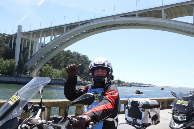 Sempre com o mar ao lado, travessia da elegante Avenida Brasil, entre o Castelo do Queijo e a Fortaleza de S. João da Foz, apreciando o local onde desagua o rio de maior caudal da Península Ibérica. O Douro, atravessado pela Ponte da Arrábida, criação genial de Edgar Cardoso que, em 1963, tinha o maior arco em betão armado a nível mundial. Repleta de turistas – que torna a visita à belíssima Ribeira quase impossível com tão pouco tempo – rápida travessia para Vila Nova de Gaia através da Ponte Luís I, inaugurada em 1886, com passagem pelas ruelas estreitas e centenários armazéns de Vinho do Porto. Zona histórica de menos à vontade para… uma histórica. É que a Jawa 250 de 1952, a mais antiga moto presente no evento, ‘a menina dos olhos entre as várias clássicas lá por casa.’ que Hélder Alves trouxe pela 5ª vez à maior maratona mototurística da Europa, não gosta de semáforos, pára-arranca no trânsito ou subidas muito íngremes porque sobem-lhe logo uns calores à cabeça… do motor!