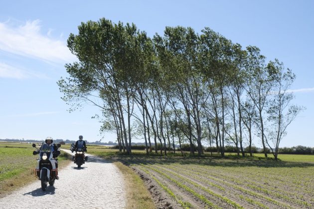 Passagem pela Murtosa, o concelho mais plano de Portugal, que prosseguiu pelos campos de Salreu e de Canelas, com caminhos a ladear esteiros, sombreados por salgueiros e carvalhos. Zona verde e plana onde foi possível ver as primeiras cegonha-branca deste Lés-a-Lés, abordando Aveiro de forma bem diferente da habitual e pouco interessante entrada pela A25, através de um caminho em terra pelas margens do Rio Vouga mas sem escapar ao aroma proveniente da fábrica da Portucel que anuncia a proximidade de Cacia. Que rapidamente foi deixado para trás, ganhando ar bem mais respirável ao chegar ao farol mais alto de Portugal, o da Costa Nova com os seus 62 metros de altura. Ali bem perto, em zona ampla e muito agradável, ainda antes da bonita e fotogénica povoação balnear do concelho de Ílhavo, onde os palheiros, armazéns de sal e de utensílios de pesca, deram origem a casas de habitação de cores fortes, espaço para o Oásis da NEXX, mostrando a completa e muito moderna gama de capacetes incluindo o best-seller X.Wed 2 e o novíssimo modular X.Vilitur. Para melhor refletir na aquisição de novo capacete, nada como a viagem pela Vagueira e Praia de Mira, com passagem pela sensível Lagoa de Mira, habitat de água doce, e por estradas florestais que são autêntica… desgraça. Do pior que se viu em muitos anos de Lés-a-Lés mas impossíveis de evitar. Obrigatório rolar muito devagar para evitar as muitas armadilhas de um asfalto mais que irregular emoldurados por pinheiros, muitos deles ardidos, e acácias, aconselhando a fuga pela também pouco interessante N109. Aconselhada, mas só a quem tinha tempo e fôlego, a escapa à praia de Palheiros da Tocha, no concelho de Cantanhede, com interessante arquitetura tradicional.