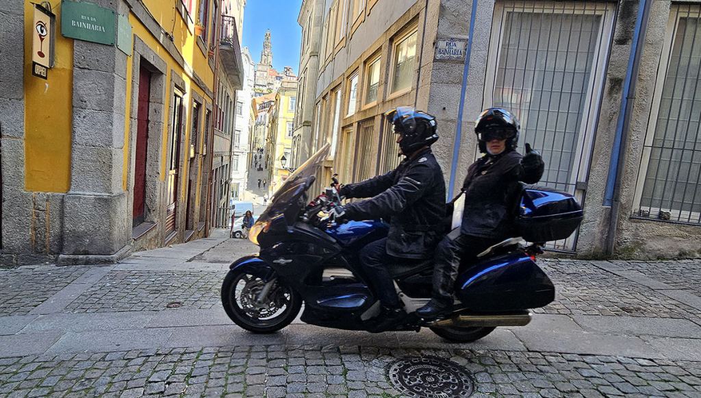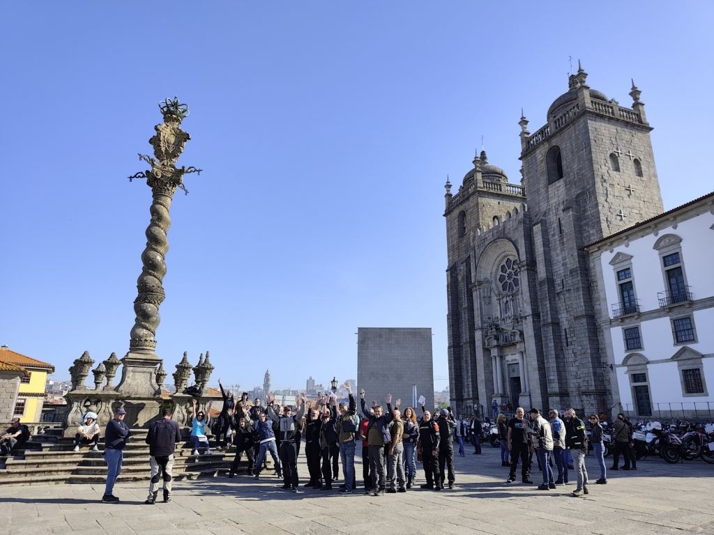 Isto graças à visita à monumental Igreja do Convento de São Francisco e um ligeiro passeio pedonal na zona da Ribeira (sem carregar capacetes e casacos diligentemente guardados pelos elementos da ‘equipa de atletismo’ do MCP) incluindo paragem na Casa do Infante e entrega dos questionários no não menos famoso ‘muro dos bacalhoeiros’. No final desse caminho sobre aquela que foi a Muralha Antiga da cidade e que trocou os antigos armazéns de bacalhau por convidativos (e caros) restaurantes, lá estava o possante escudeiro Fábio Cordeiro, garantindo que dali ninguém passava sem entregar o salvo-conduto sob a forma de um questionário respondido.