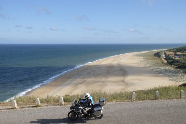 Foi o caso da ligação entre a Figueira da Foz e Arruda dos Vinhos, ao longo de 345 quilómetros de paisagens fabulosas, saboreadas em animada solidariedade e com muita animação ao longo de descoberta que foi, também, gastronómica. Percurso muito interessante mas trabalhoso o que a Federação de Motociclismo de Portugal gizou em locais por onde nunca o Lés-a-Lés havia andado, para mostrar praias que são atracção enorme para surfistas de todo o Mundo, e onde se pesca e come o melhor peixe. Afinal, dois importantes ‘cartões de visita’ que ficam mais fáceis de conhecer de moto, como ficou provado num dia em que o litoral, muitas vezes superpovoado e sem ordenamento, também pode ser simples e belo. E ventoso! Muito vento ao longo de praticamente toda a etapa mas que não fez ‘voar’ a animação do pelotão que, depois da paciência gasta na travessia do Grande Porto na véspera, queria mesmo era… andar de moto.