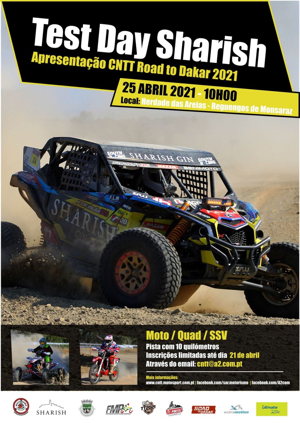 A Herdade das Areias em Reguengos de Monsaraz recebe já no próximo dia 25 de Abril o denominado Test Day TT Portel by Sharish. Organizado pela SAR Motorismo e com o apoio do Municipio de Portel, da Federação de Motociclismo de Portugal, A2 Comunicação e Clube TT Terramotos, esta acção irá marcar o regresso de pilotos e máquinas do campeonato nacional TT á actividade antes do arranque do campeonato.
