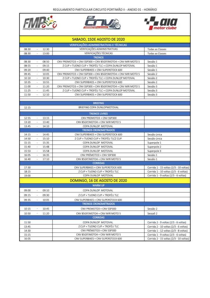 Com programa dividido entre os dias de Sábado e Domingo as primeiras corridas serão realizadas no final da tarde do primeiro dia após os treinos livres e cronometrados, iniciando-se as mesmas no Domingo junto à hora do almoço depois de uma manhã reservada a ‘warm-up’ e treinos cronometrados.