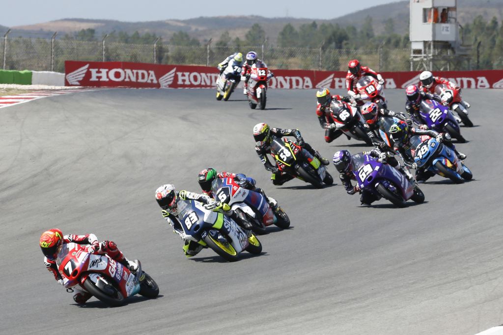 A classe Moto3, que aqui tem o nome de JuniorGP, é sempre sinónimo de grandes lutas em pista, muitas trocas de posições e decisões apenas na bandeira de xadrêz. As duas corridas realizadas no Autódromo Internacional do Algarve não foram excepção e foi mesmo com o final das 15 voltas que se conheceram os vencedores. No primeiro duelo foram sete os pilotos que ficaram separados por menos de um segundo e depois de uma intensa e louca derradeira volta foi Xavi Zurutuza o vencedor na frente de Tatchakorn Buasri que perdeu a vitória com a meta já no horizonte por apenas 55 milésimas de segundo e na frente de um ‘herói’ Luca Lunetta que depois de ser forçado a arrancar no final da grelha de partida – ele tinha conquistado a ‘pole’ – devido a um problema com a sua moto, encetou uma fantástica recuperação que o colocou no grupo da frente já no derradeiro terço da corrida. O italiano ficou a 131 milésimas do primeiro e na frente de David Almansa, este a 159 milésimas de segundo do primeiro lugar.