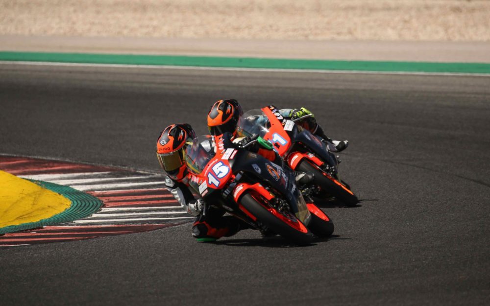 O jovem piloto de Coimbra – que venceu as duas primeiras corridas no campeonato nacional na categoria Moto5 – foi novamente o mais rápido a concluir a corrida, com sete voltas, após um intenso duelo com Carlos Tortosa, liderando em todas as voltas com excepção da sexta. Na linha de meta bateu o rival por 259 milésimas e somou mais 25 pontos neste arranque perfeito entre o feroz pelotão de 19 pilotos.