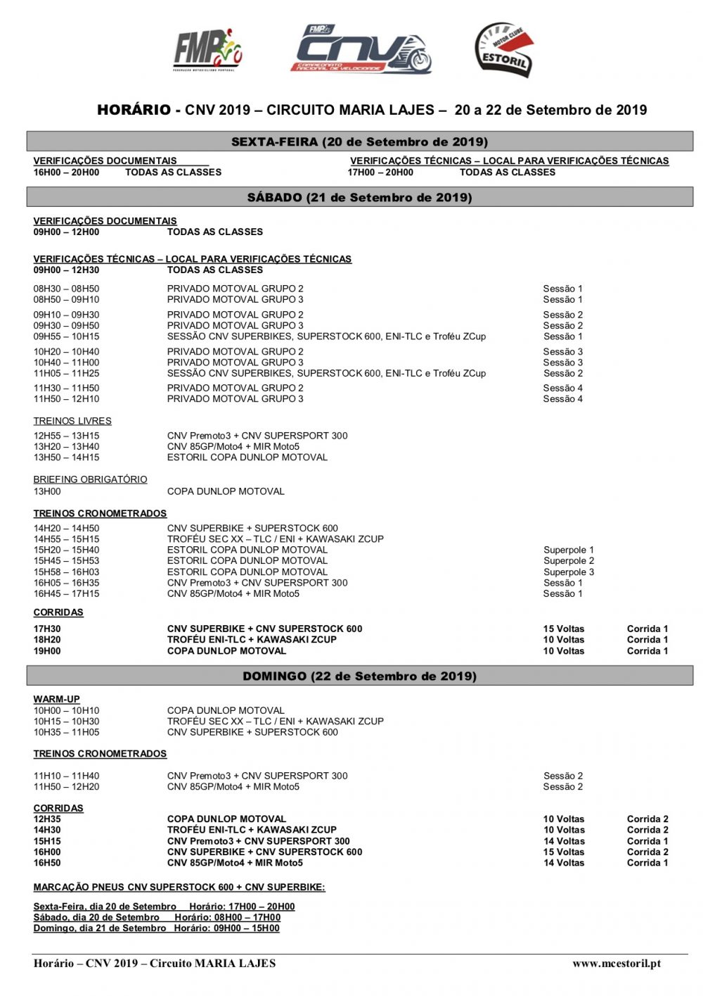 Todas as restantes categorias do campeonato vão estar igualmente em pista para mais uma ronda bem animada e onde será homenageada Maria Lajes, uma das comissárias do clube organizador recentemente desaparecida cujo nome será mesmo o oficial daquela que é a quinta prova do campeonato nacional 2019. Depois deste fim‑de‑semana o CNV ficará com mais uma prova para realizar, já no mês de Outubro.